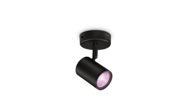 使用 Philips 智能 LED Imageo 外置黑色射灯的可调节射灯和彩色智能灯照亮家居装饰。此款灯具已连接 WiZ。连上现有 Wi-Fi,通过 WiZ 应用程序或语音进行控制。