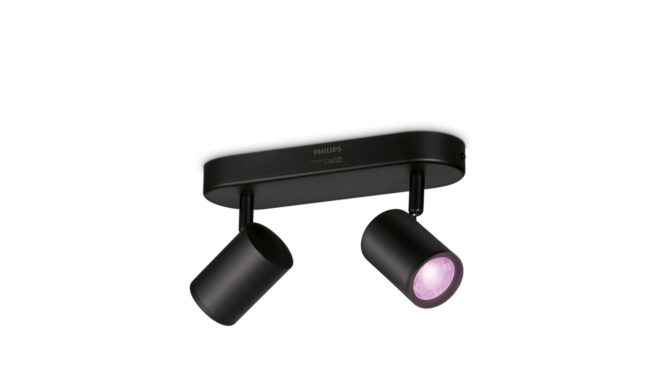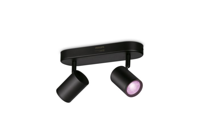 使用 Philips 智能 LED Imageo 外置黑色射灯,让彩色智能灯和两个可调节射灯为您营造理想氛围。此款灯具已连接 WiZ。连上现有 Wi-Fi,通过 WiZ 应用程序或语音进行控制。