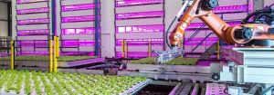 在此过程中,一定需要使用 LED 灯。飞利浦 GreenPower LED 生产模块的长度为一米半,使用正确的光照配方照射幼苗,确保植物均匀生长。种植商可以控制每株生菜获得的准确光照时长、亮度以及光谱,确保植物全年一致生长。